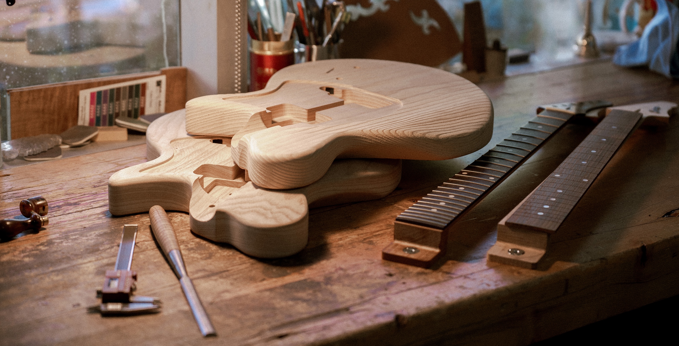 Albert Kauffmann is a true color specialist, finishing his masterpieces on beautifully roasted pine bodies and roasted maple necks. The Dutch masters have long been celebrated for their mastery of color and light—the Amsterdam Rijksmuseum proudly displays masterpieces like Rembrandt’s The Night Watch.